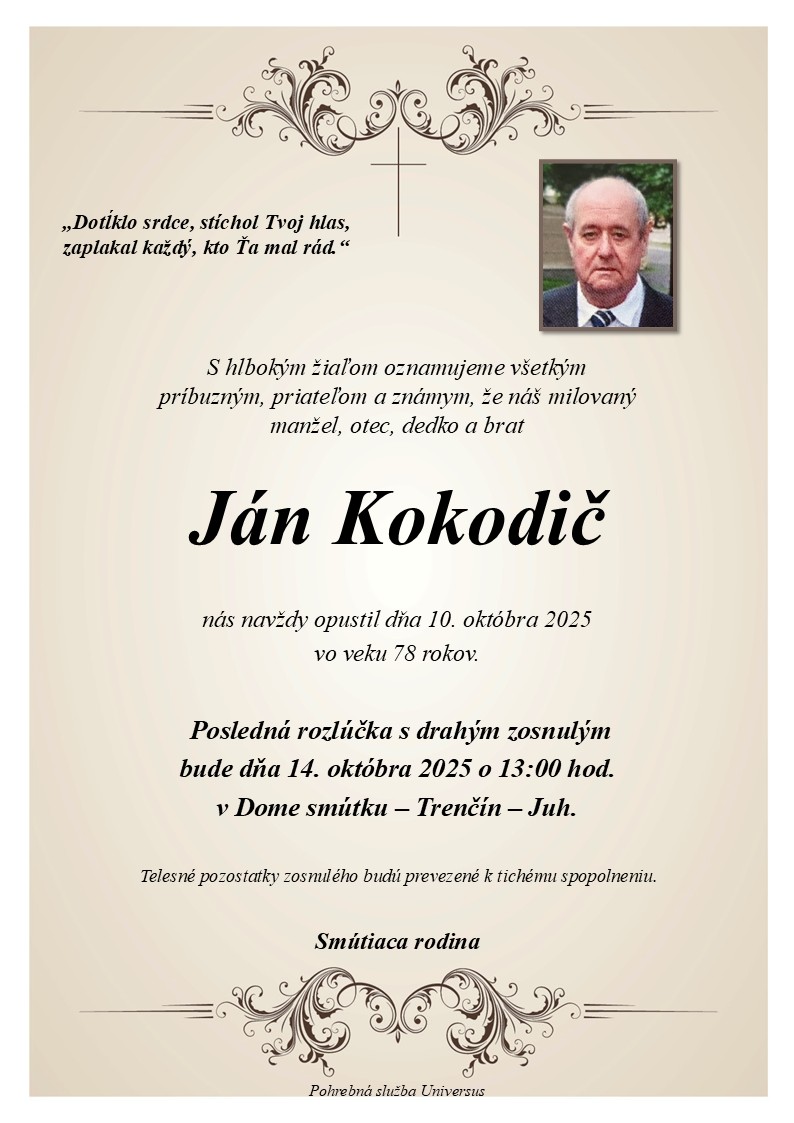 Posledná rozlúčka sa uskutoční dňa: 14.10.2025.