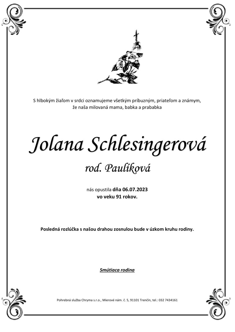 Jolana Schlesingerová rod. Paulíková