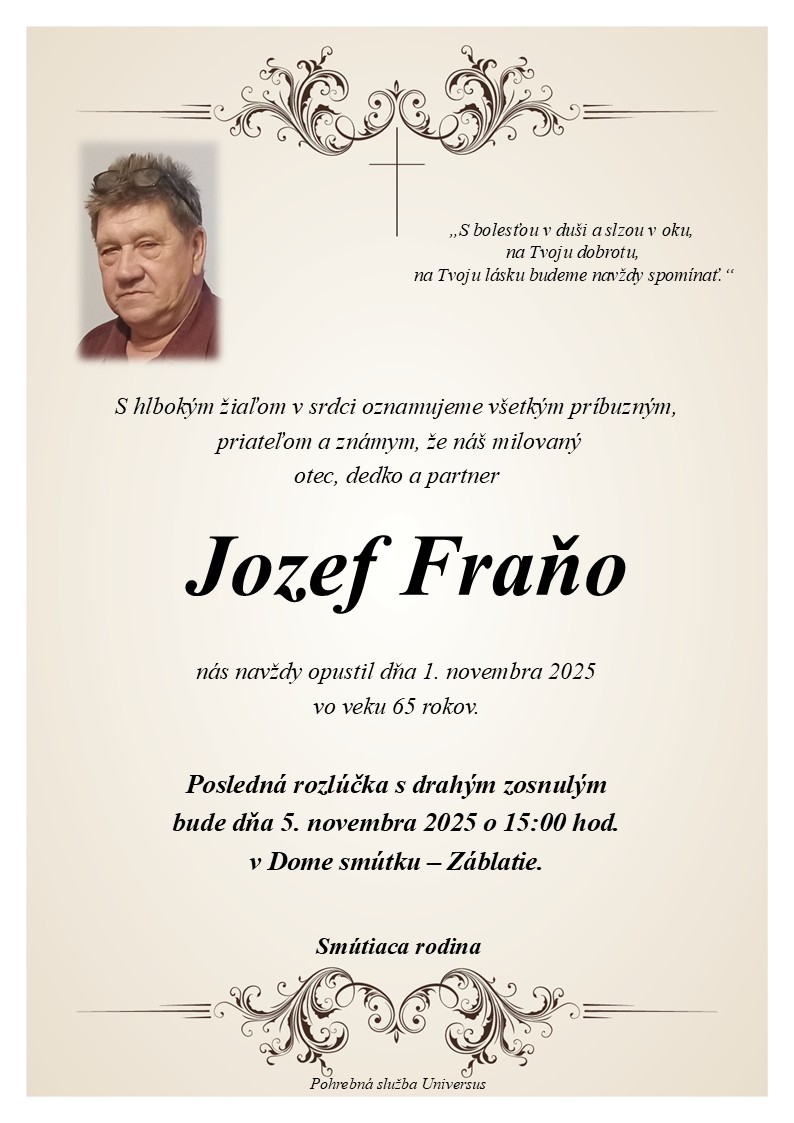 Posledná rozlúčka sa uskutoční dňa: 05.11.2025.
