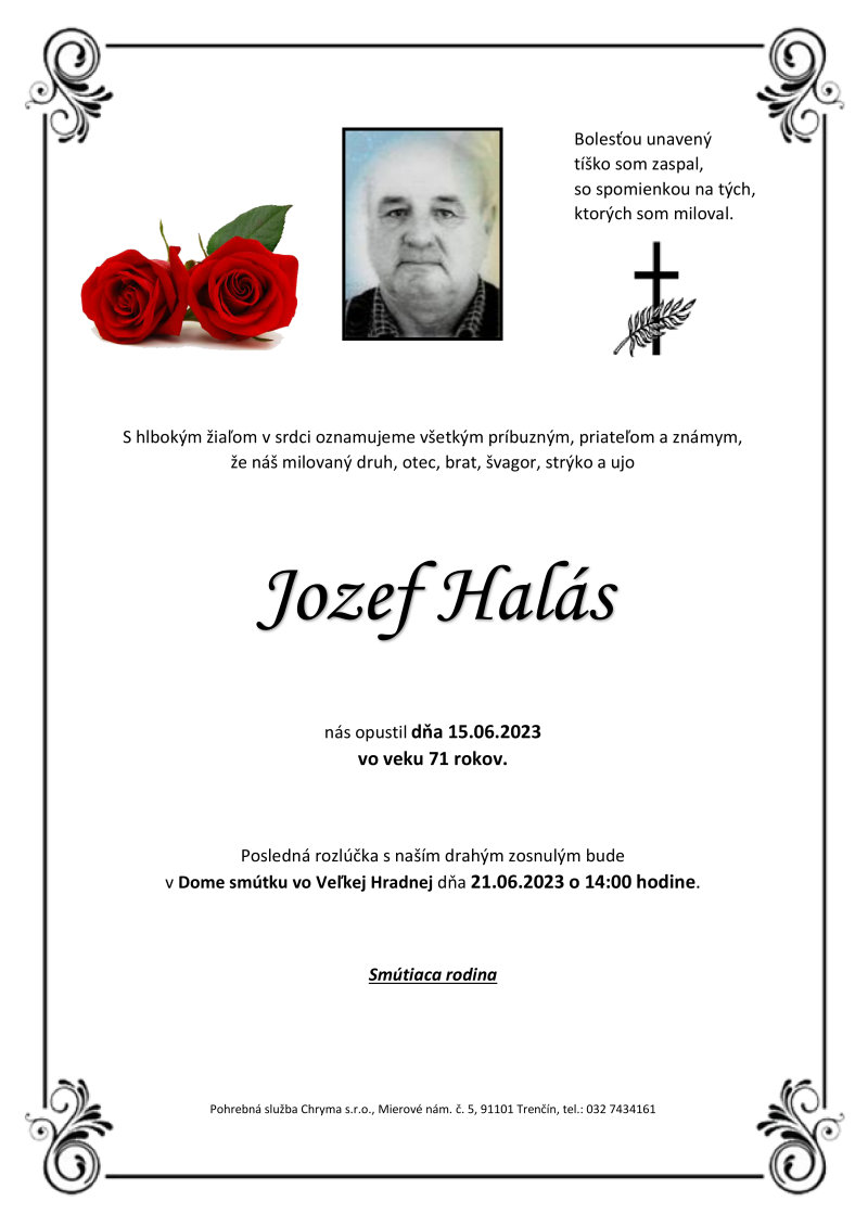 Posledná rozlúčka sa uskutoční dňa: 21.06.2023.