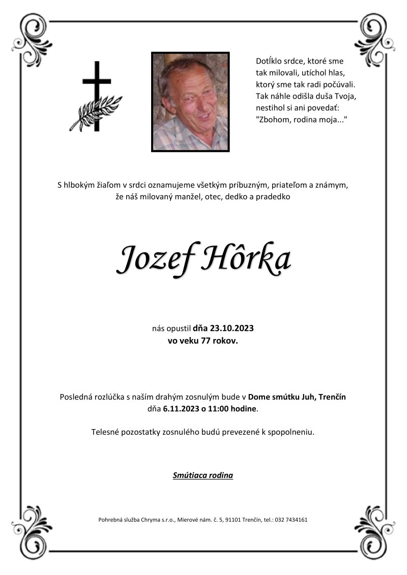 Posledná rozlúčka sa uskutoční dňa: 06.11.2023.