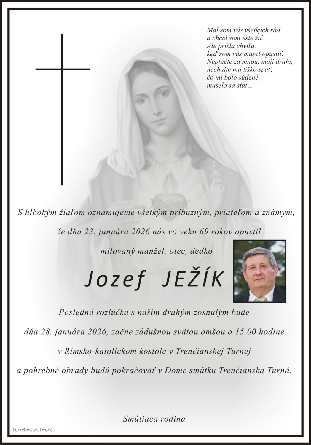 Posledná rozlúčka sa uskutoční dňa: 28.01.2026.
