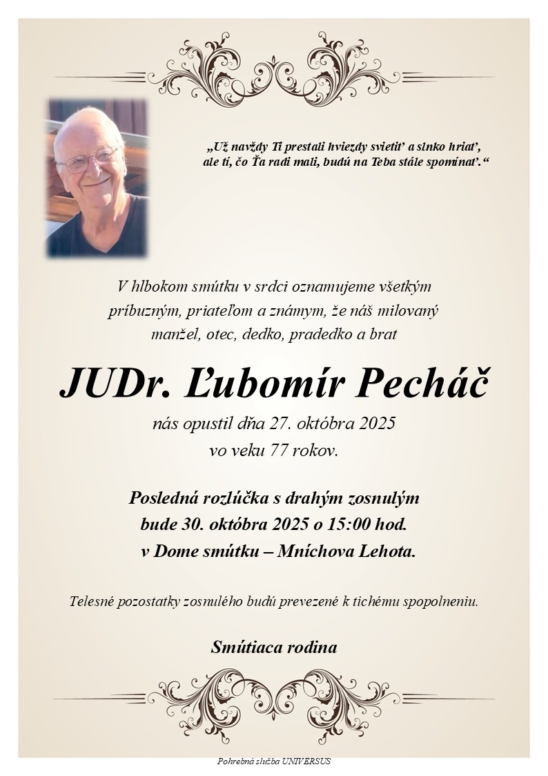 Posledná rozlúčka sa uskutoční dňa: 30.10.2025.
