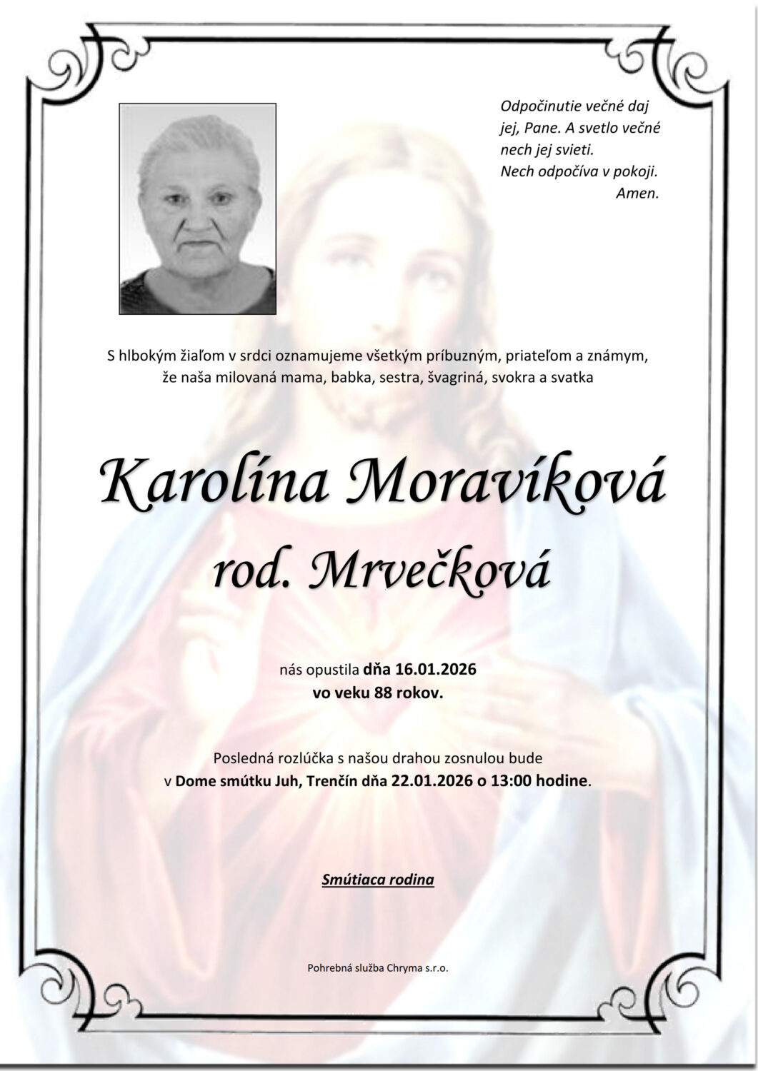 nás opustil(a) dňa: 16.01.2026, vo veku 88 rokov.