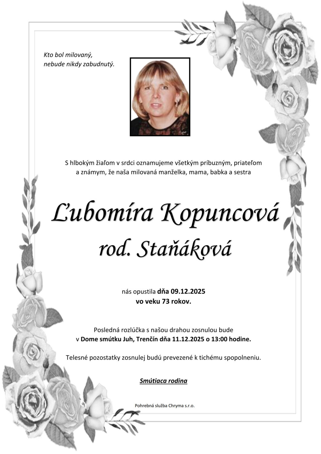 Posledná rozlúčka sa uskutoční dňa: 11.12.2025.