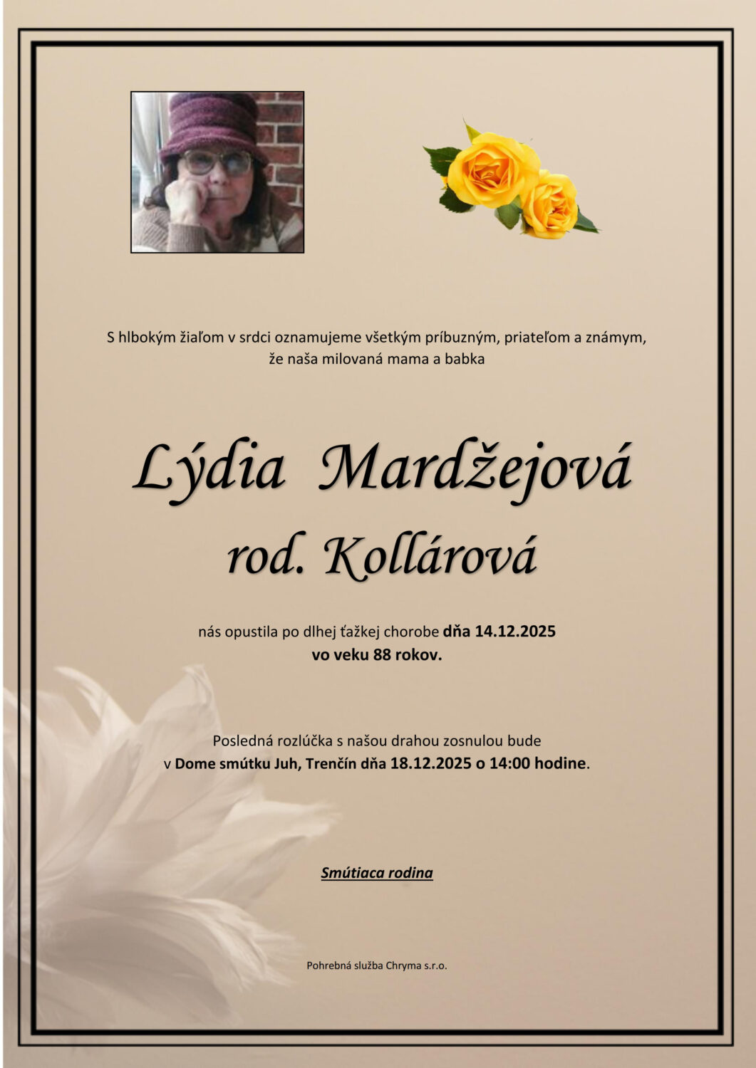 Posledná rozlúčka sa uskutoční dňa: 18.12.2025.