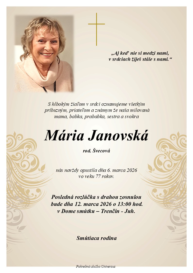 Posledná rozlúčka sa uskutoční dňa: 12.03.2026.