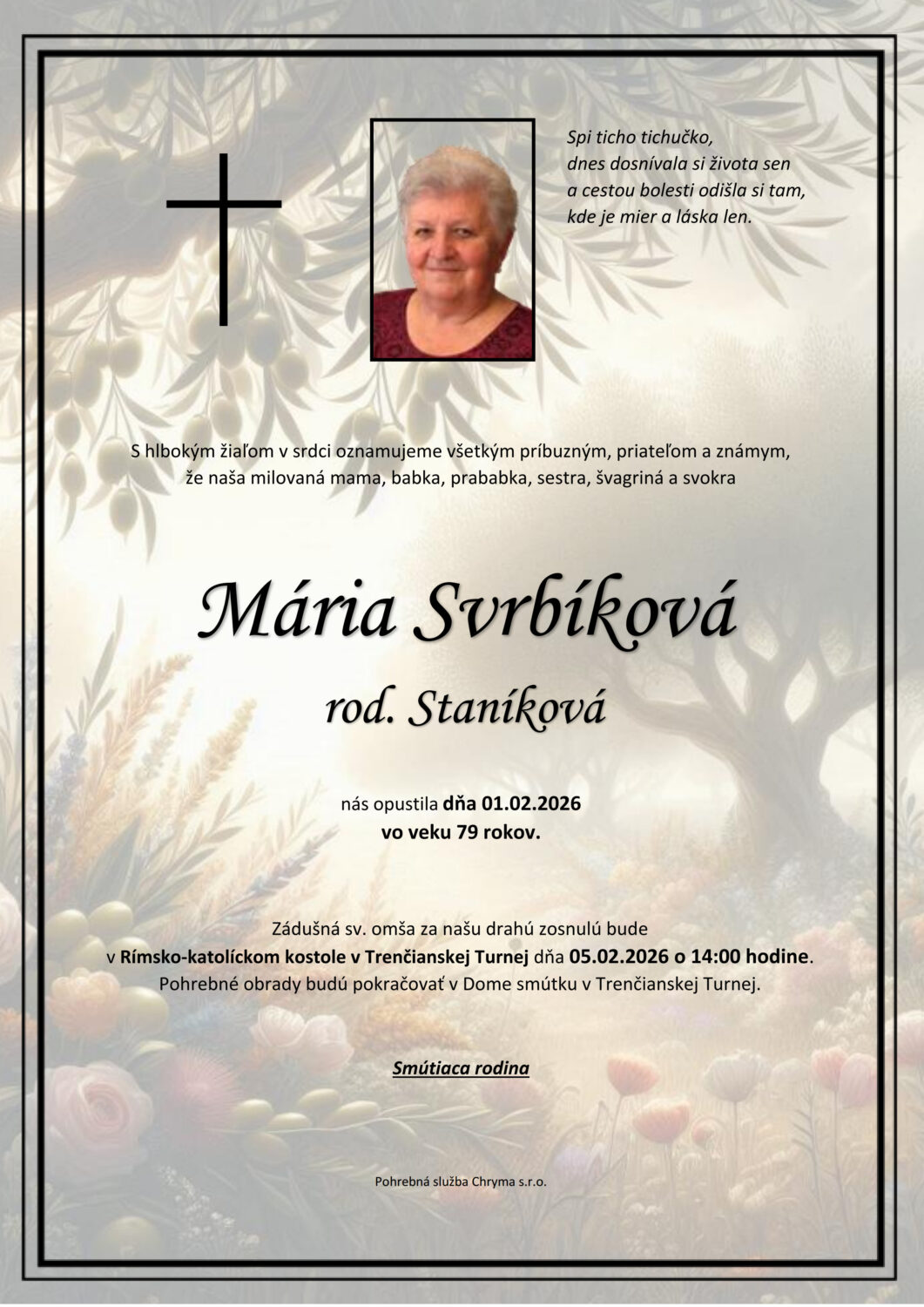 nás opustil(a) dňa: 01.02.2026, vo veku 79 rokov.