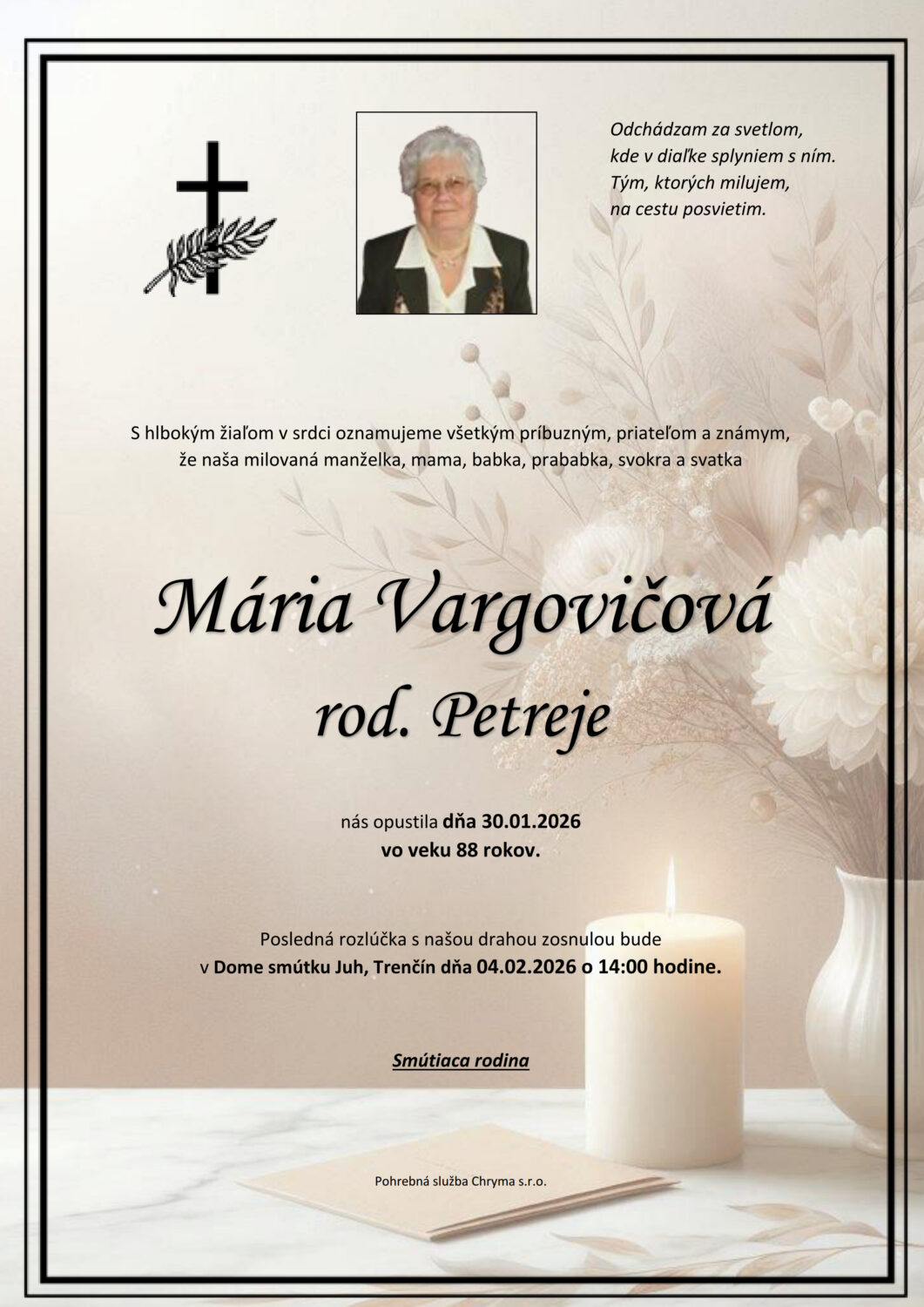 Posledná rozlúčka sa uskutoční dňa: 04.02.2026.