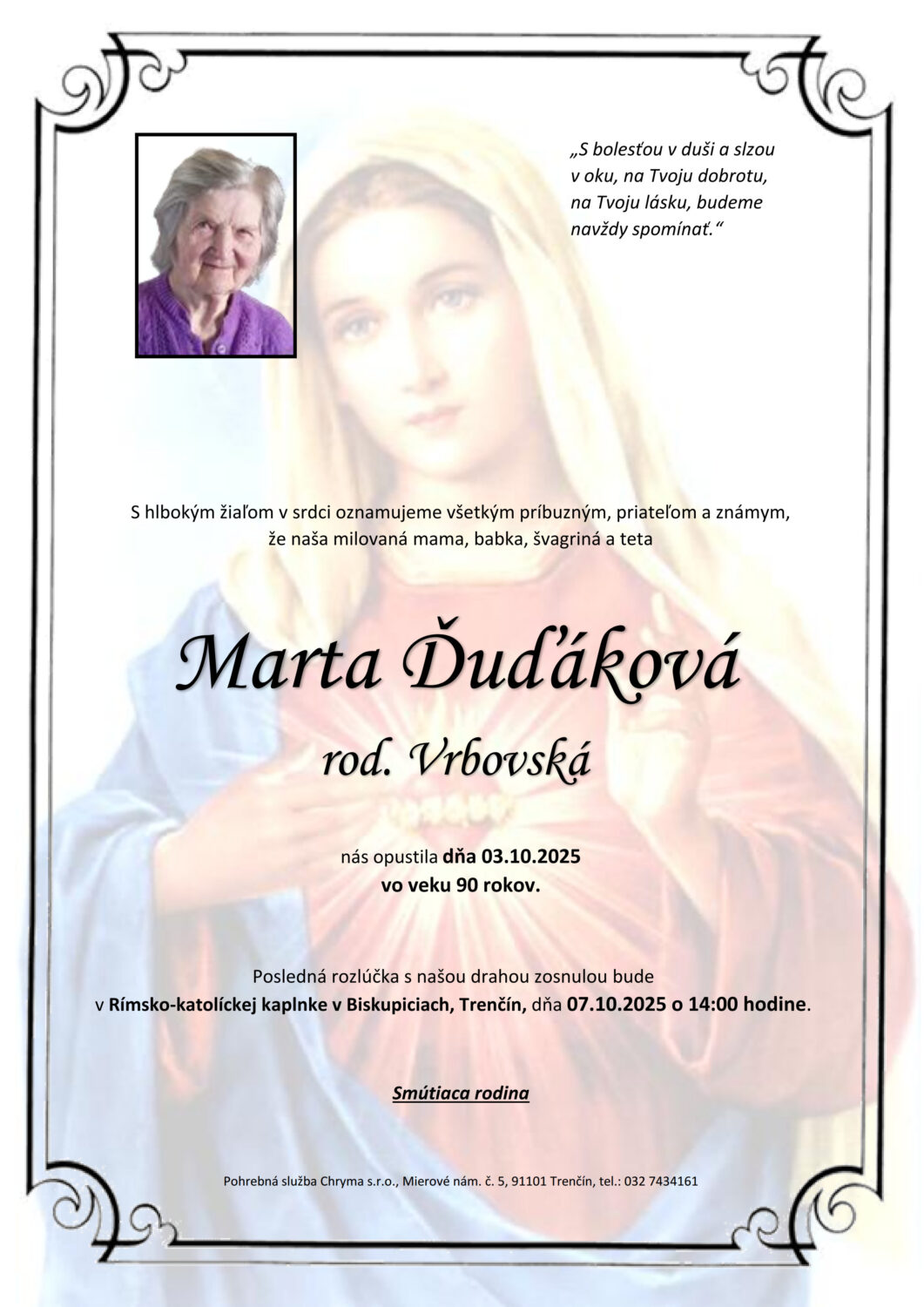nás opustil(a) dňa: 03.10.2025, vo veku 90 rokov.