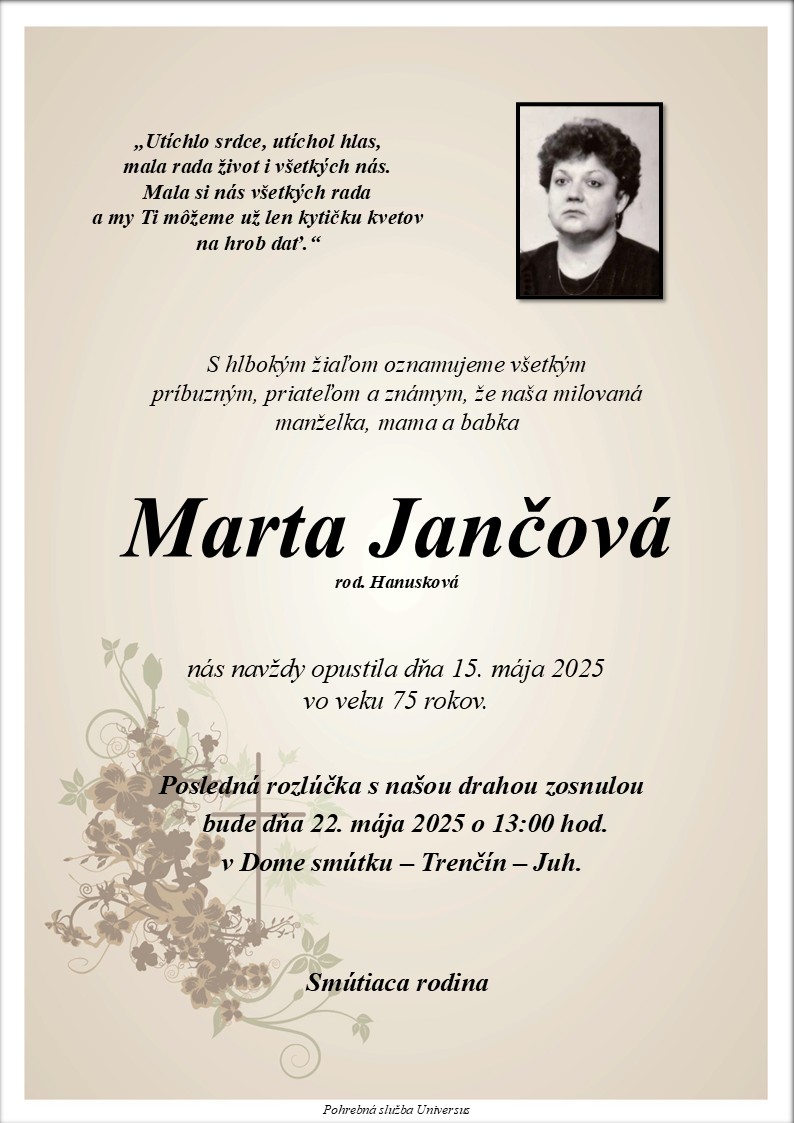 Posledná rozlúčka sa uskutoční dňa: 22.05.2025.