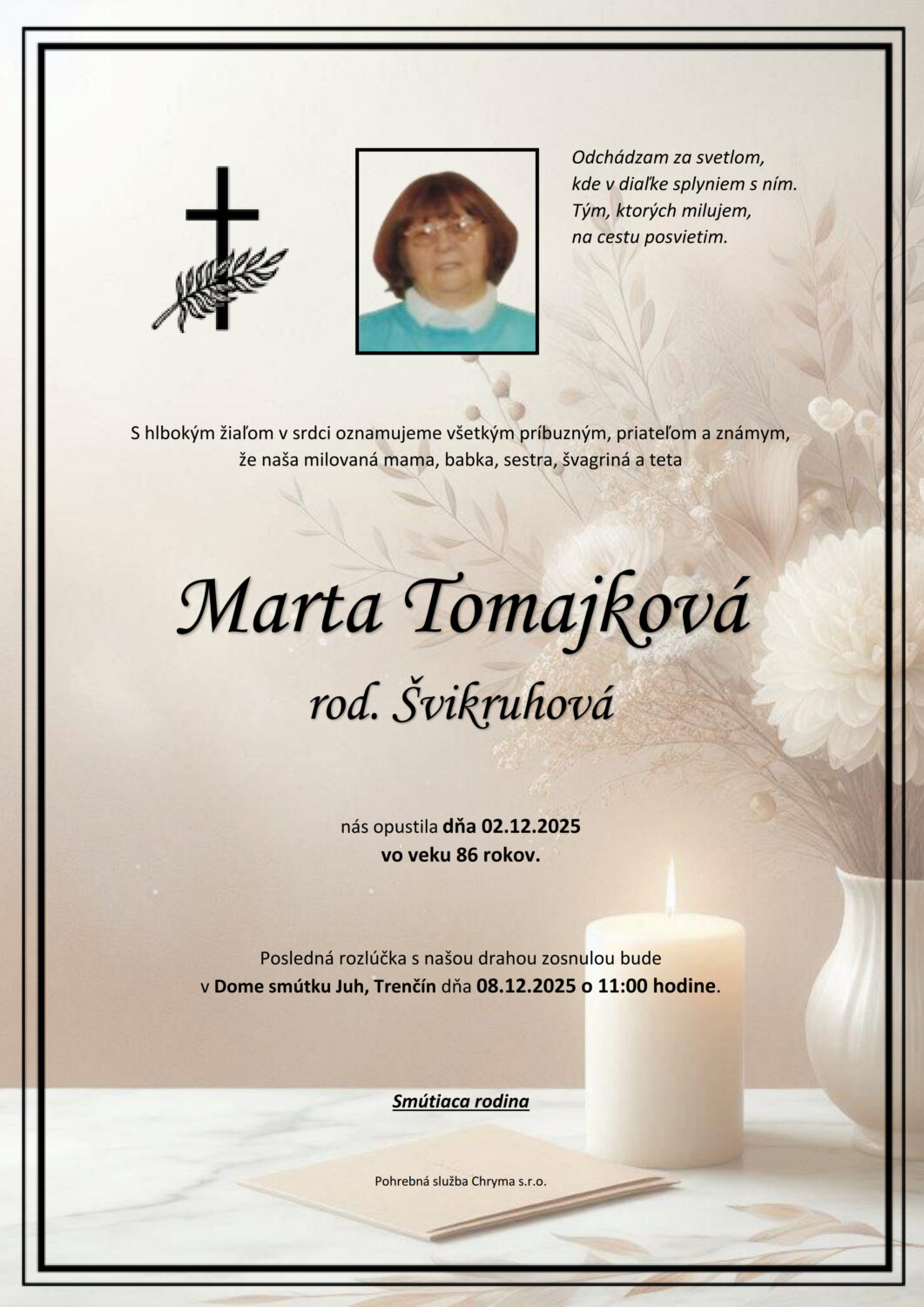 Posledná rozlúčka sa uskutoční dňa: 08.12.2025.