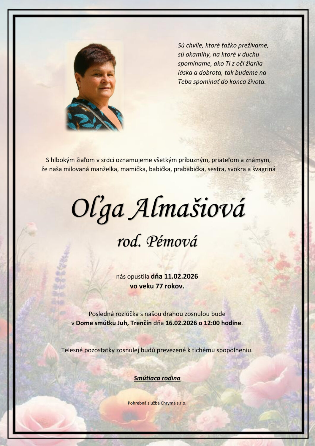 Posledná rozlúčka sa uskutoční dňa: 16.02.2026.