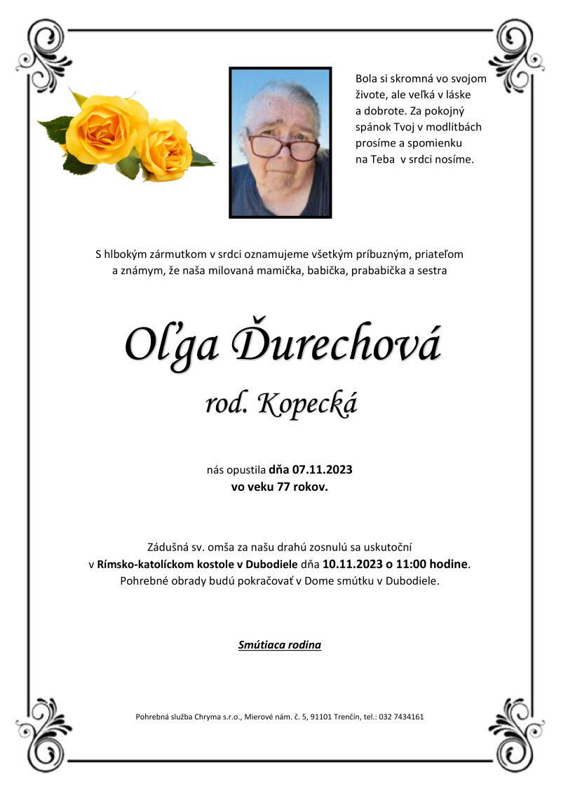 Oľga Ďurechová rod. Kopecká