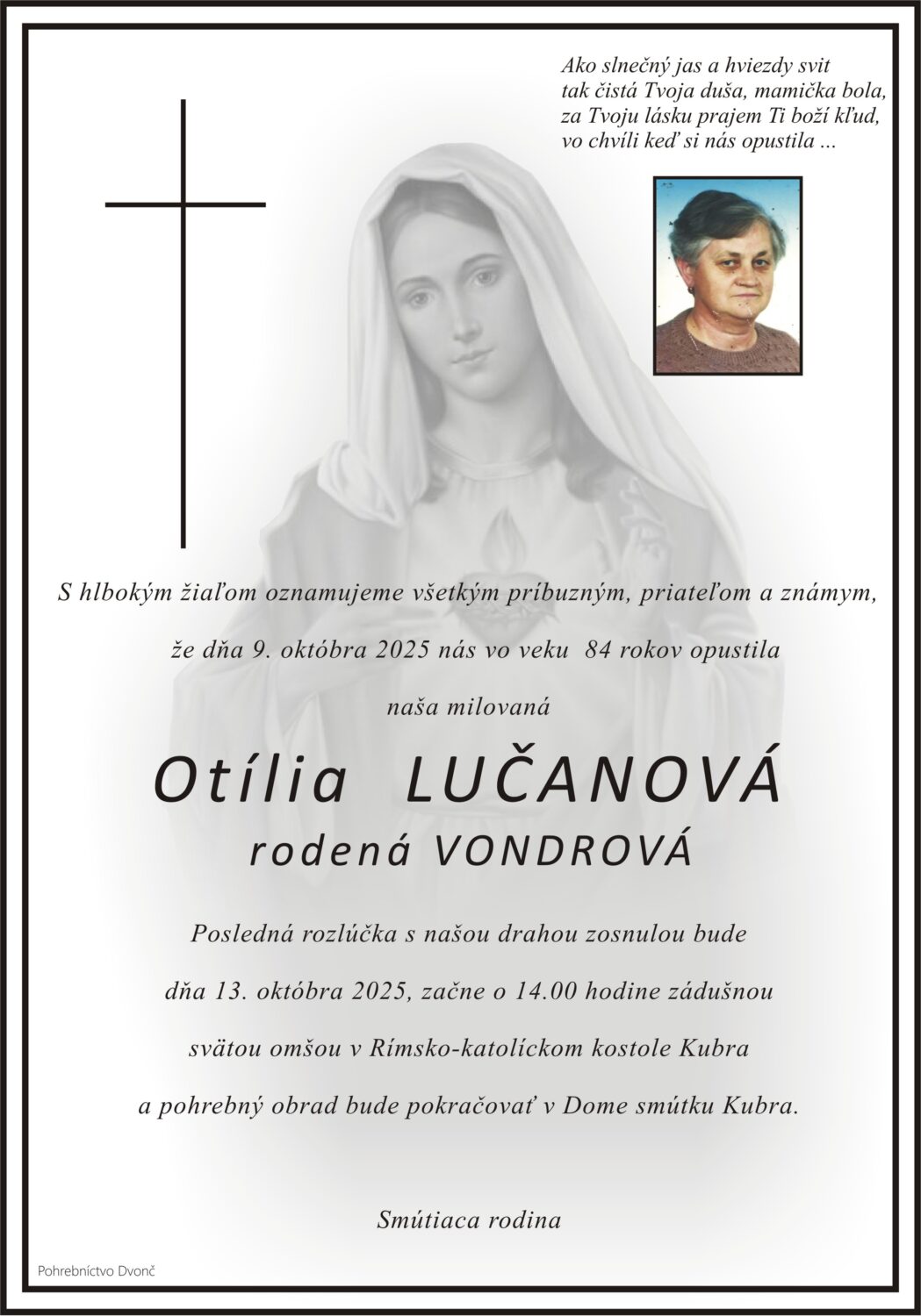 Posledná rozlúčka sa uskutoční dňa: 13.10.2025.