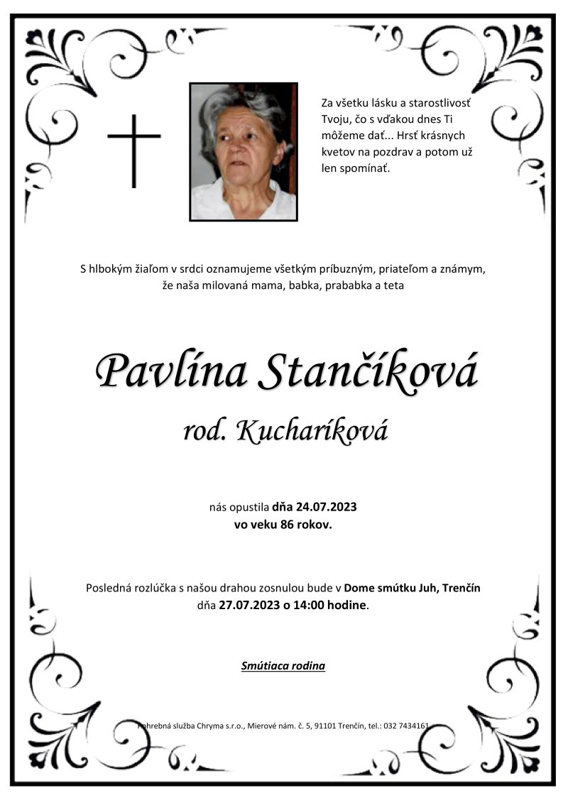 Posledná rozlúčka sa uskutoční dňa: 27.07.2023.