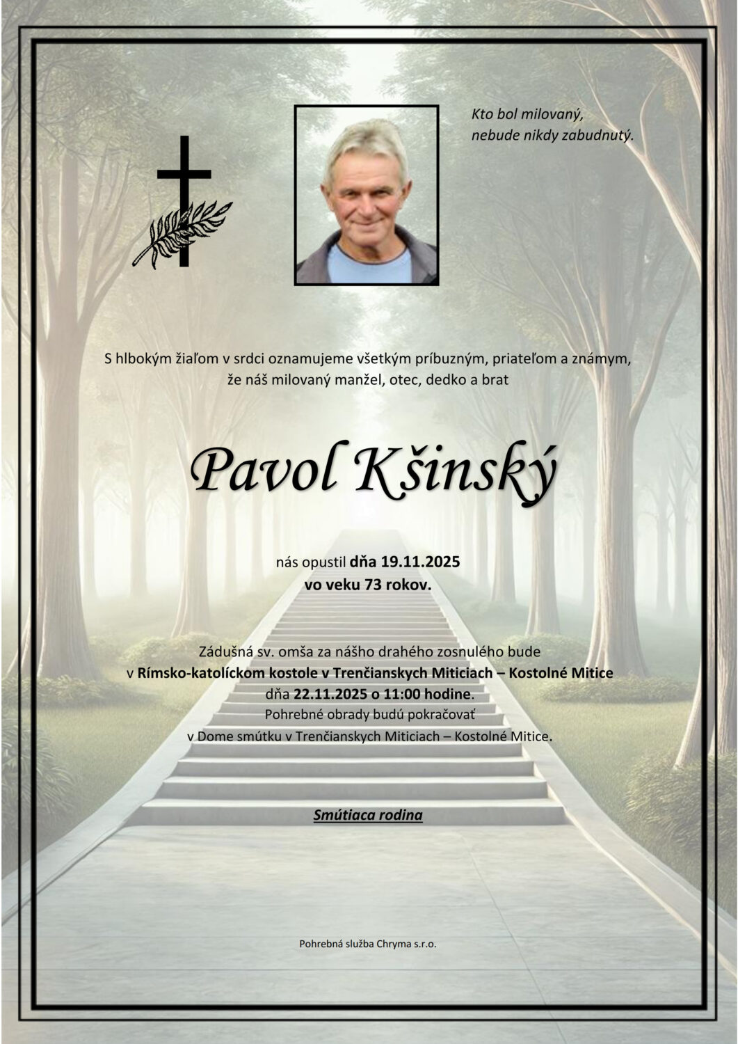 nás opustil(a) dňa: 19.11.2025, vo veku 73 rokov.