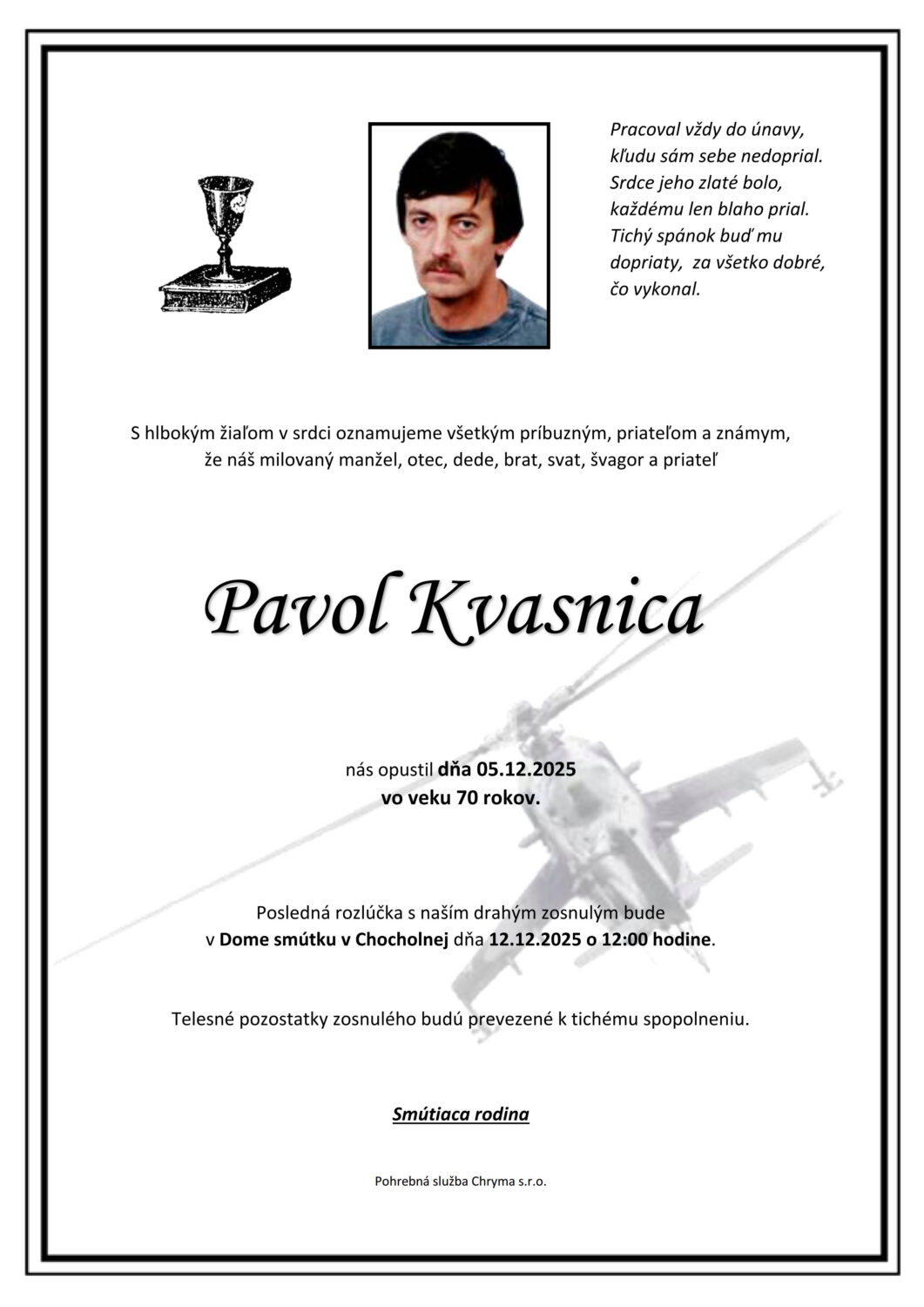 nás opustil(a) dňa: 05.12.2025, vo veku 70 rokov.