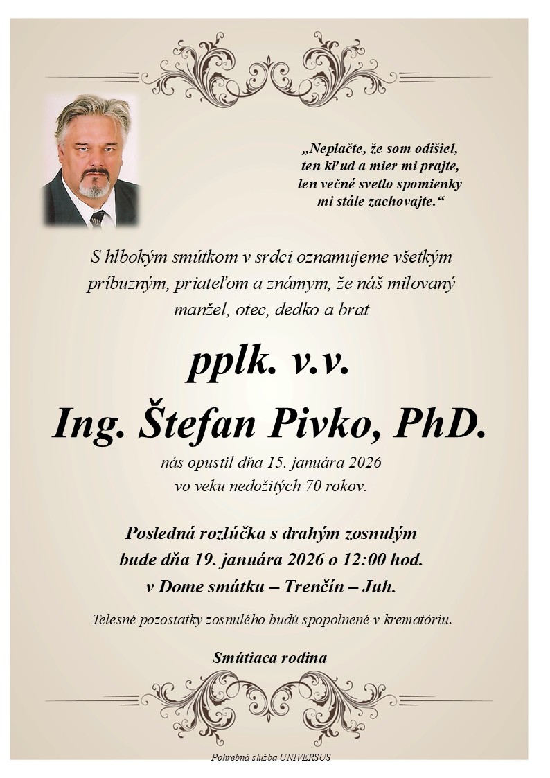 S hlbokým žiaľom oznamujeme všetkým príbuzným, priateľom a známym, že