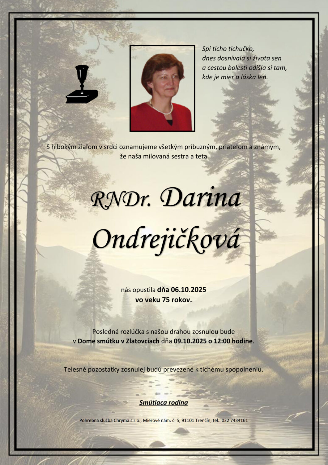 Posledná rozlúčka sa uskutoční dňa: 09.10.2025.