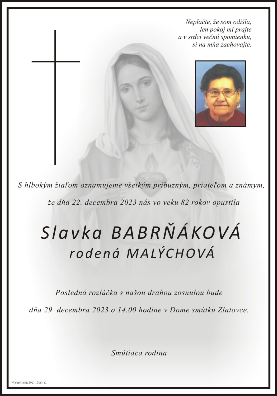 Posledná rozlúčka sa uskutoční dňa: 29.12.2023.