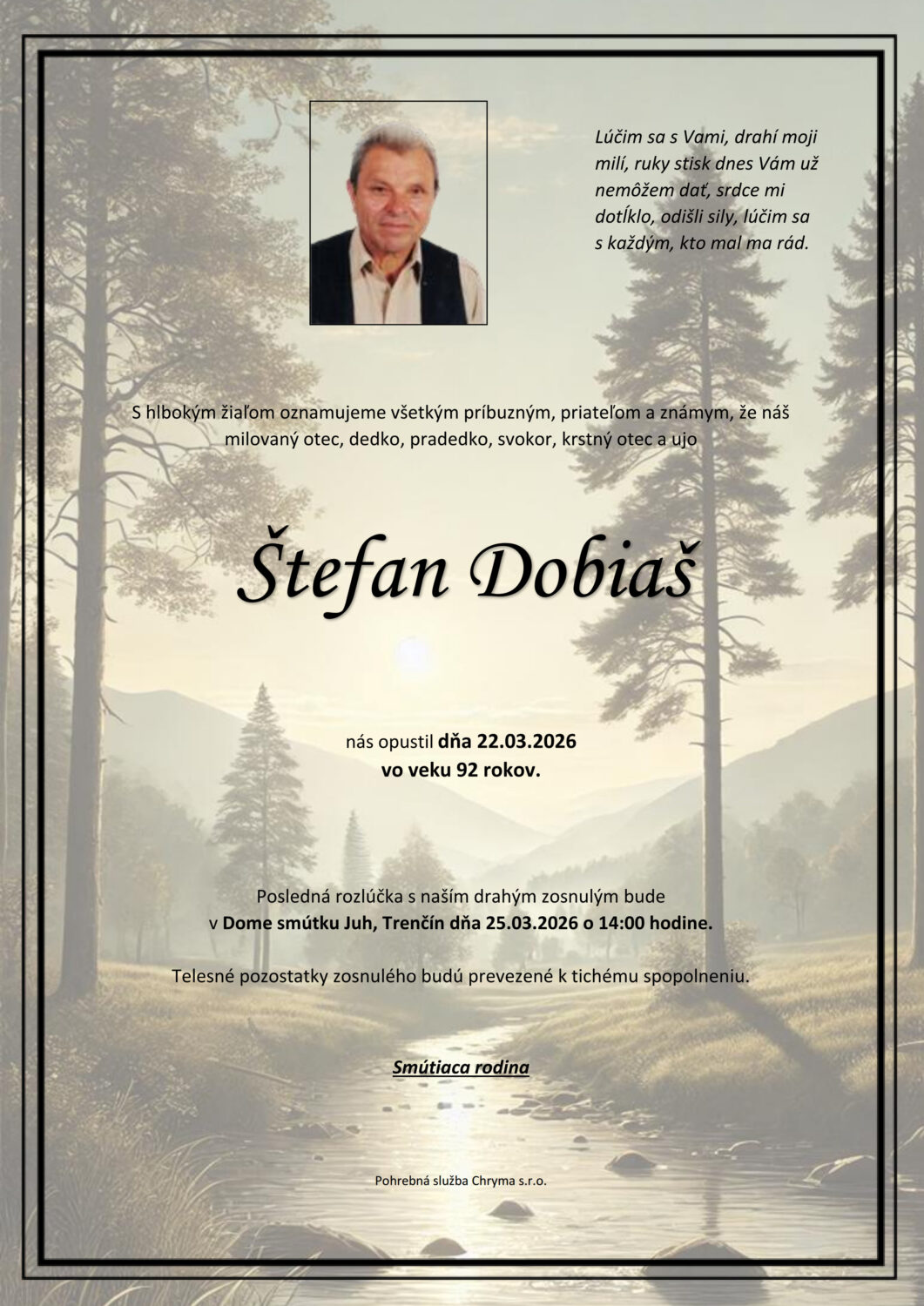 Posledná rozlúčka sa uskutoční dňa: 25.03.2026.