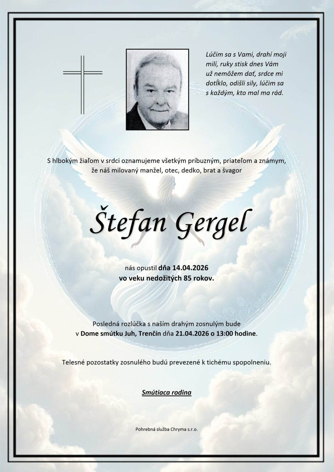 Posledná rozlúčka sa uskutoční dňa: 21.04.2026.