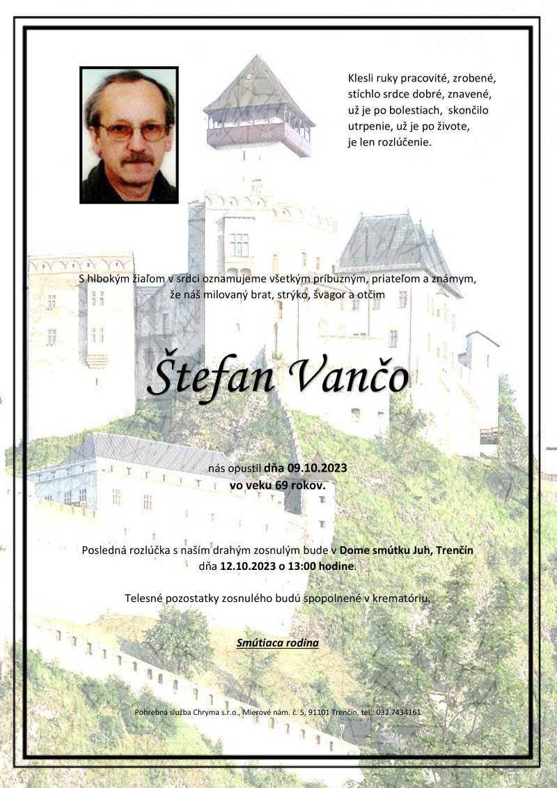 Posledná rozlúčka sa uskutoční dňa: 12.10.2023.