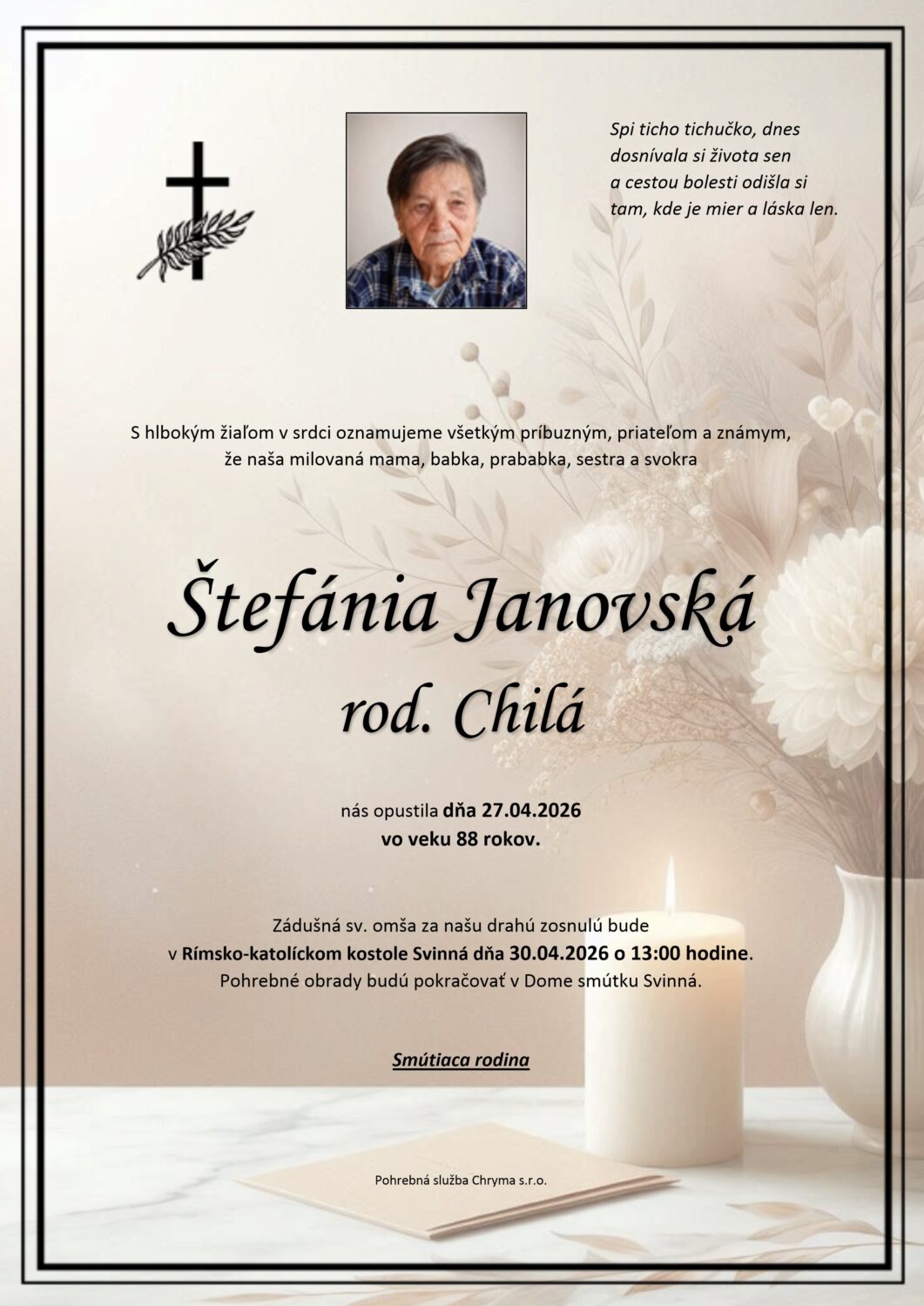 nás opustil(a) dňa: 27.04.2026, vo veku 88 rokov.