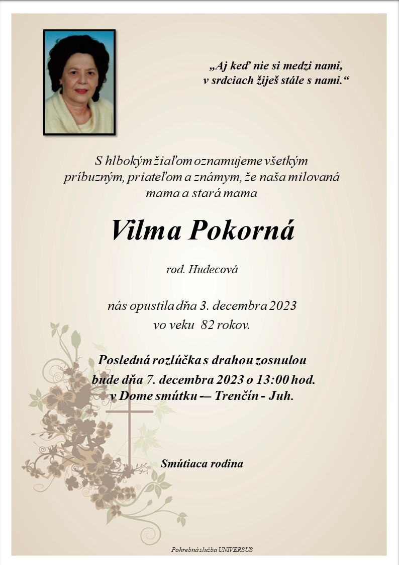 S hlbokým žiaľom oznamujeme všetkým príbuzným, priateľom a známym, že